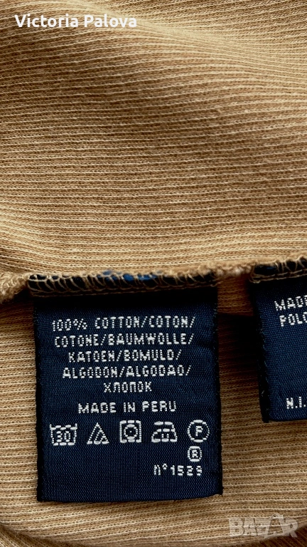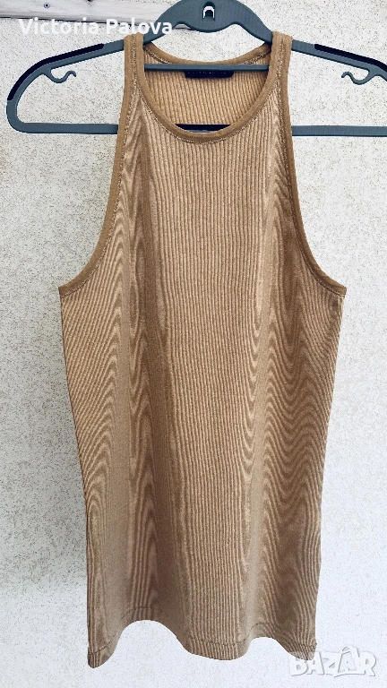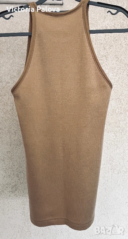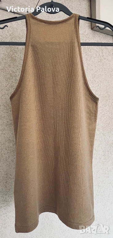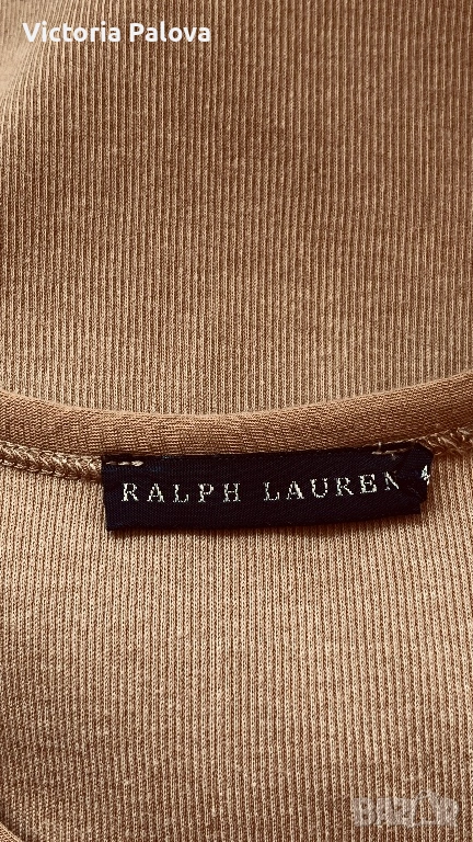 Стилен и впечатляващ модел на Ralph Lauren, който се откроява с модерната си линия и усещане за класа. Кройката е тип халтер с т.нар. американско изрязване – раменете са красиво открити, линията се извива към врата и оформя издължен, много женствен силует. Това е една от най-актуалните и търсени форми, защото стои едновременно изчистено, елегантно и различно. Изработен от 100% висококачествен памук от Перу – една от най-добрите памучни материи в света. Платът е мек, плътен и разтеглив, пада естествено по тялото, придавайки усещане за комфорт и лукс. Моделът е рядко попадение – минималистичен, без излишни детайли, изключително модерен и лесен за комбиниране. ГО - 40-46см, дължина - 68см.