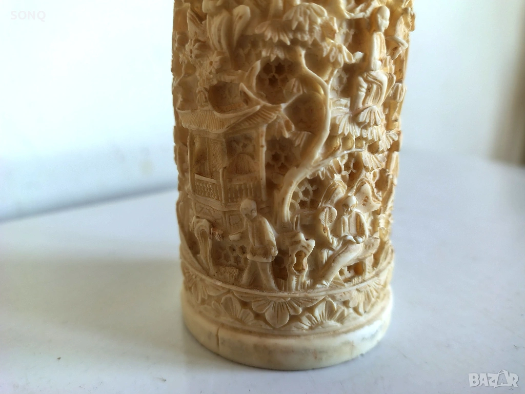 Прекрасна ръчна изработка,имитираща слонова кост със бронзово месингови детайли. Само за ценители.