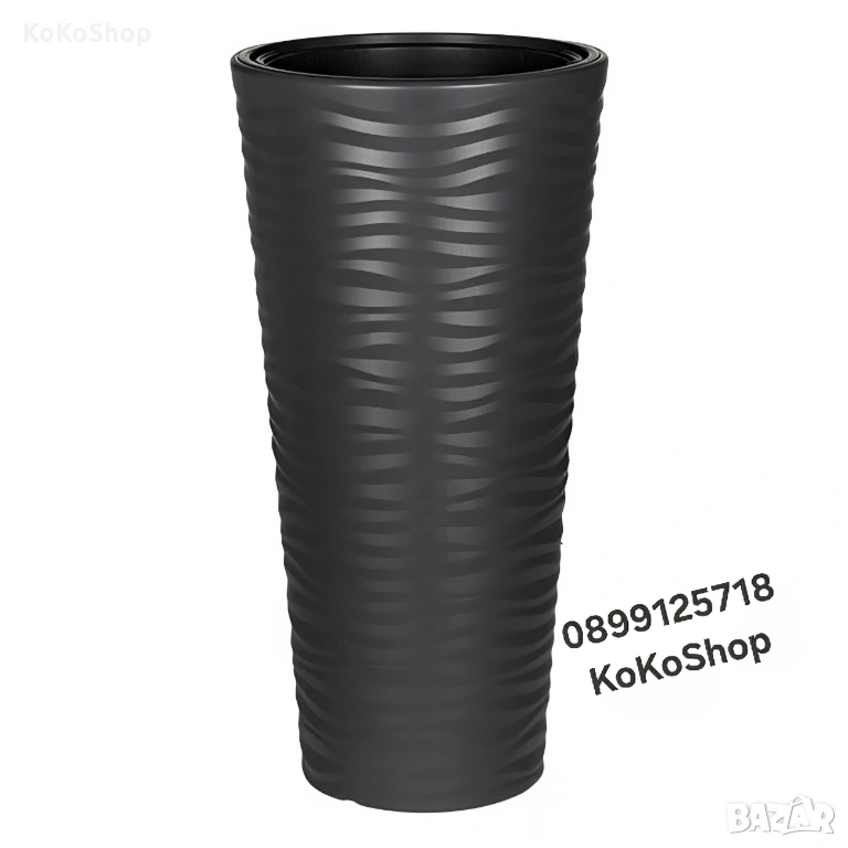 кашпа / саксия, с конусовидна форма, в цвят антрацит