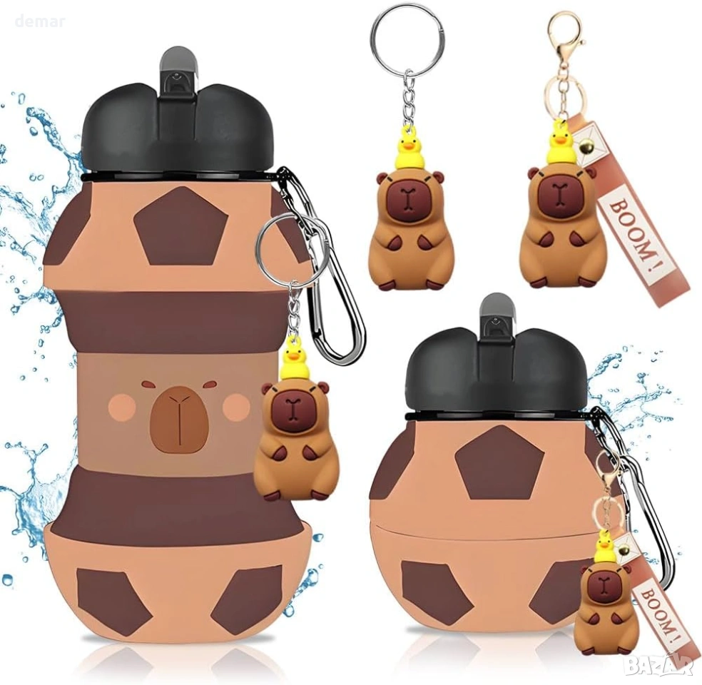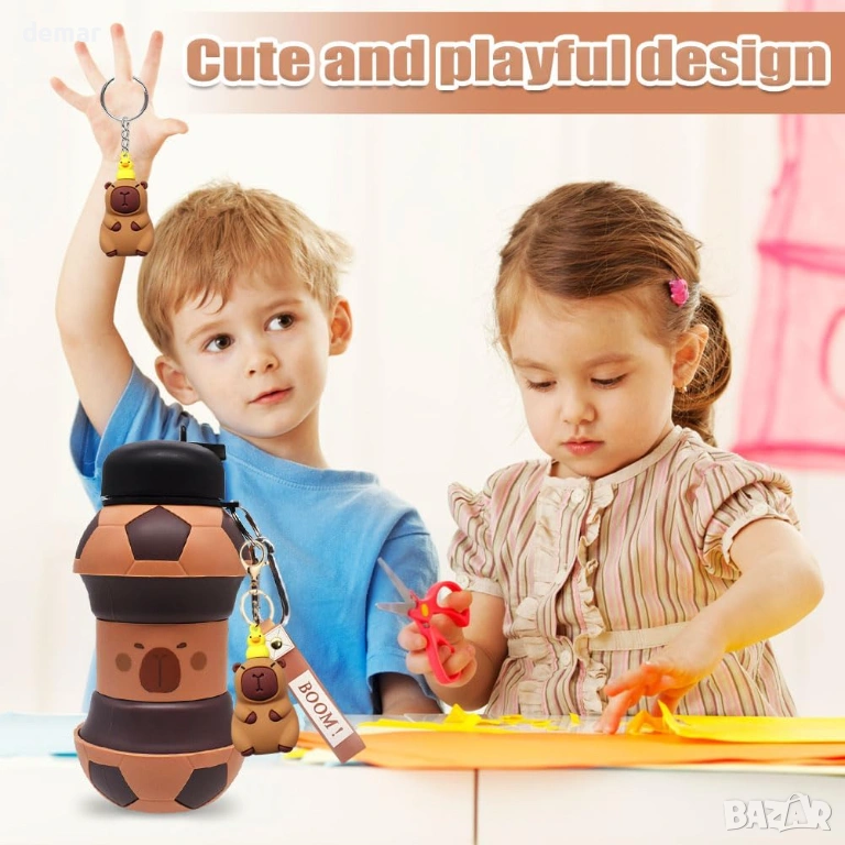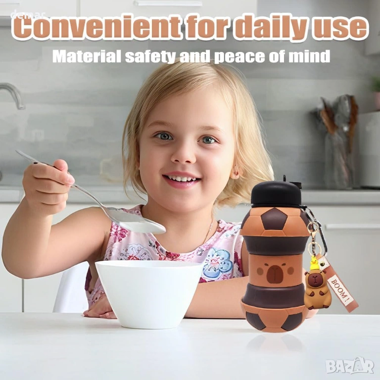 Бутилка за пиене за деца, силиконова бутилка за вода с карабинер, ключодържател, 550 мл