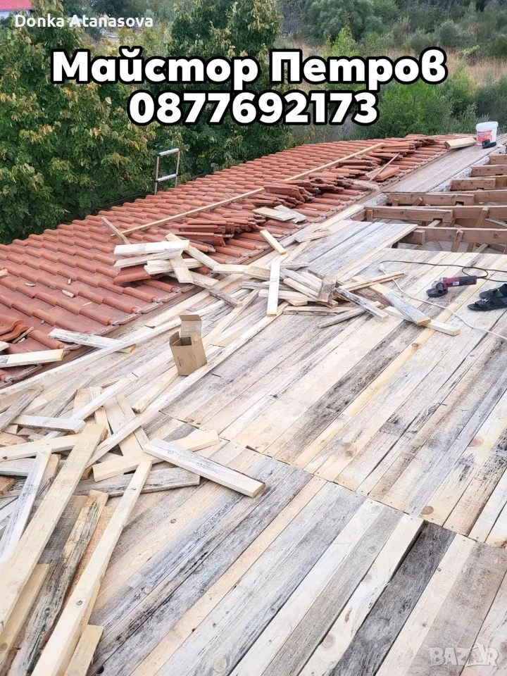 "Ремонт на покриви – бързо, качествено и на добри цени! Ако имате течове, счупени керемиди или нужда от цялостен ремонт, доверете се на Майстор Петров. Работим бързо, качествено и коректно. Обадете се на 0877692173 и запазете безплатен оглед още днес. Вашият здрав покрив е на една стъпка разстояние!"