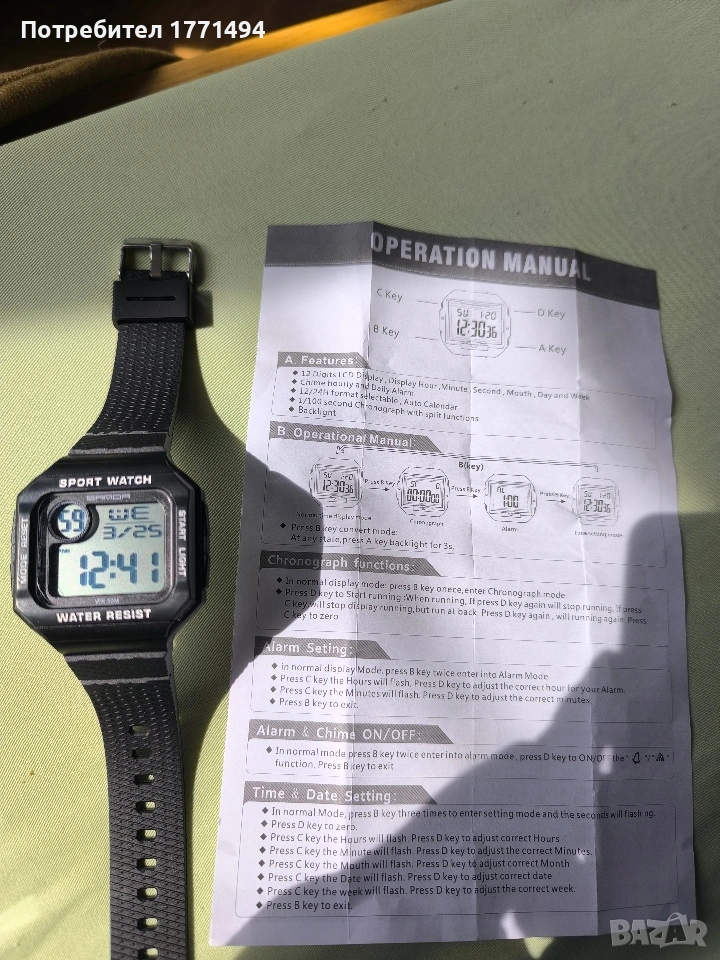 Водоустойчив с размери 42/46 mm.Предлагам с опция преглед и тест.Моля прегледайте и другите ми обяви.