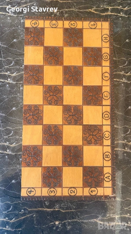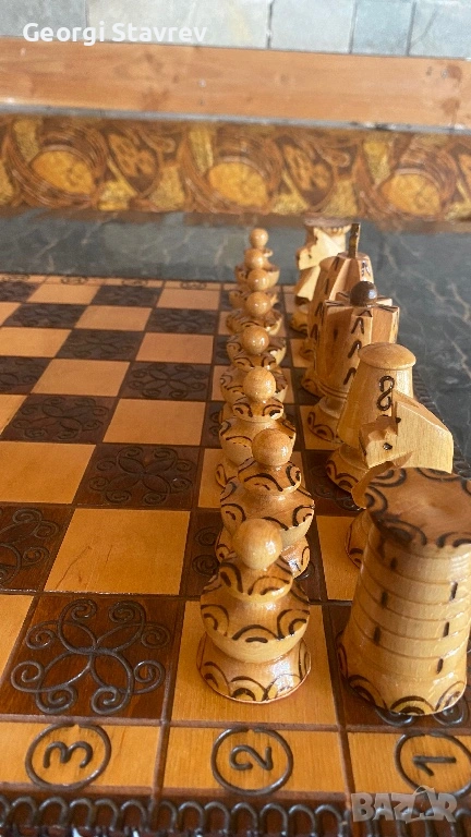 Уникален ръчно изработен дървен шах (40х40 см) – Пирография и Дърворезба