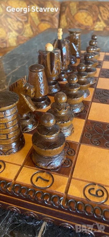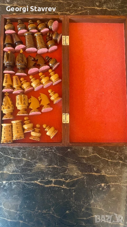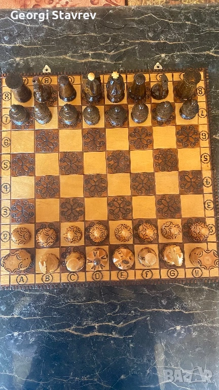 Продавам красиво изработен шахматен комплект, отличаващ се с детайлна ръчна изработка. Идеален както за активна игра, така и за стилен интериорен акцент или подарък за ценители.