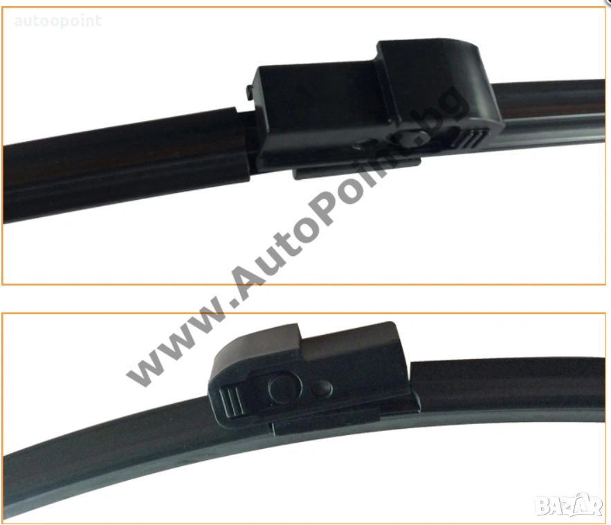 - Чистачките са тип "БАНАН" ( без шарнирна чистачка ) трябва да махнете своя накрайник на рамото ( пластмасовия със заключването ) и да закрепите директно новата чистачка!