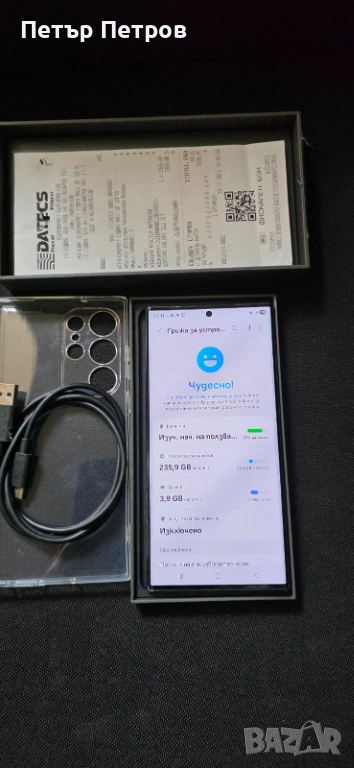 Samsung Galaxy S23 Ultra 256GB Black ПЪЛЕН КОМПЛЕКТ!-Като НОВ! С изтекла гаранция!-430 ЕВРО!