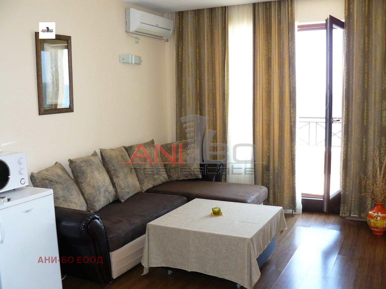АНИ-БО недвижими имоти Ви предлага за продажба прекрасен двустаен апартамент с фронтална морска панорама на първа линия на няколко крачки от плажа!