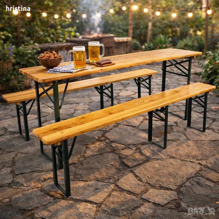 Комплект маса с две пейки, снимка 1 - Градински мебели, декорация  - 53983859 Комплект маса с две пейки, снимка 2 - Градински мебели, декорация  - 53983859 1/2
