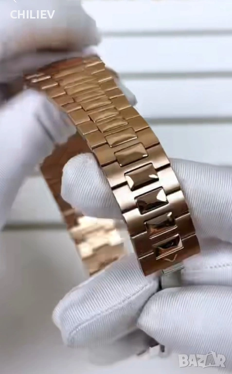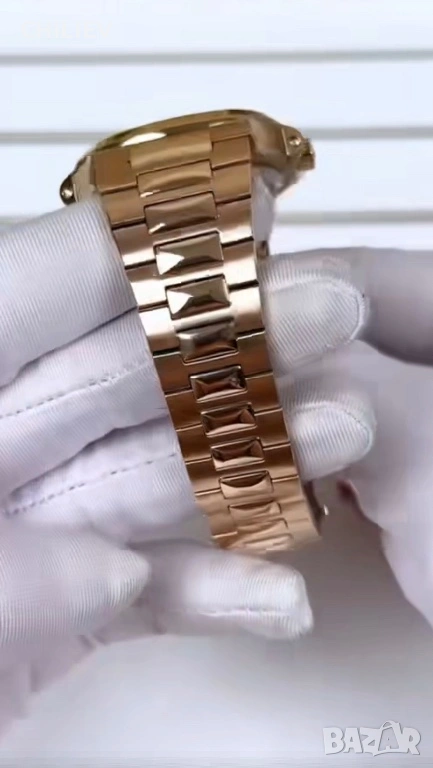 Нов, не носен автоматичен часовник. Продава се, защото ми е голям 40мм. Цвят розово злато с двутонална верига - полирани звена и бръш. Работи изключително точно с механизъм мийота. Водоустойчив 50м. Стъкло - кристал сапфир. Верига със скрито закопчаване. Пълен комплект с кутия и документи.