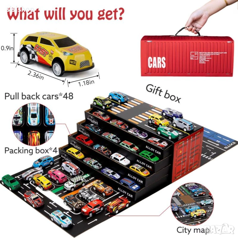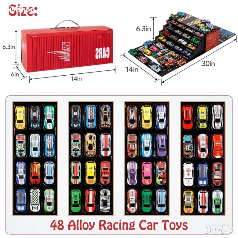 Търсите перфектния подарък, който ще остави всяко дете без дъх? Представяме Ви мега комплекта с 48 колички, скрити в огромен червен контейнер. Тази играчка е сбъдната мечта – тя предлага безкрайни възможности за забавление чрез своята функция за трансформация от преносим куфар в динамичен гараж с вълнуваща писта за спускане.