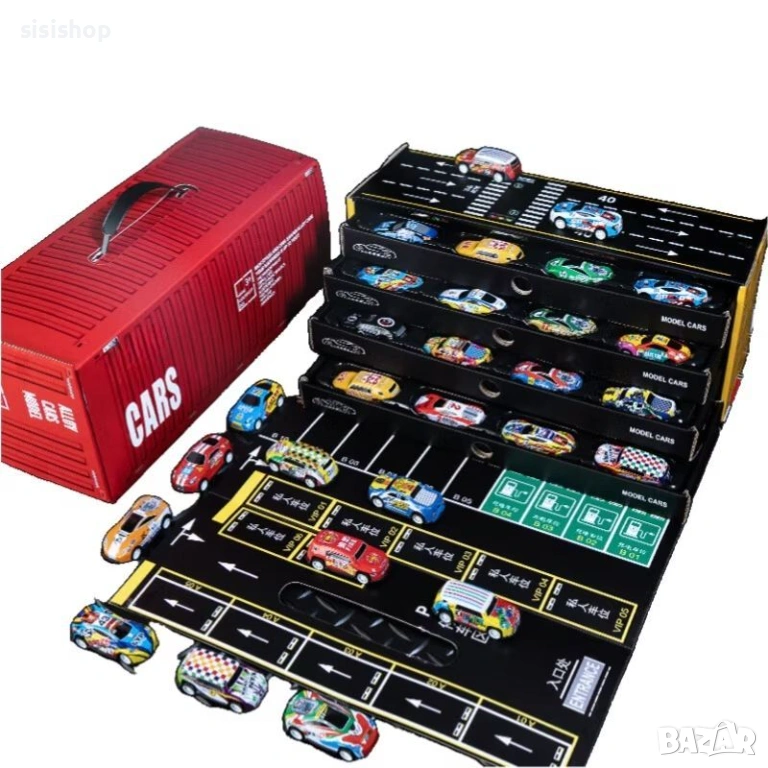 Магически Преносим Гараж Контейнер с 48 Колички и Градска Карта за Игра