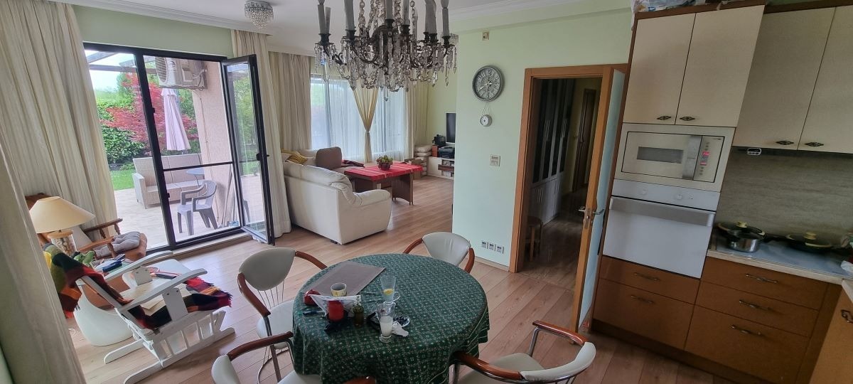ниво 1: просторна дневна с кухня и трапезария, килер и баня с тоалетна.