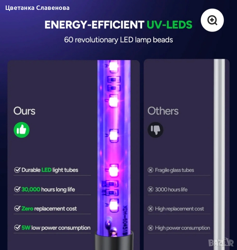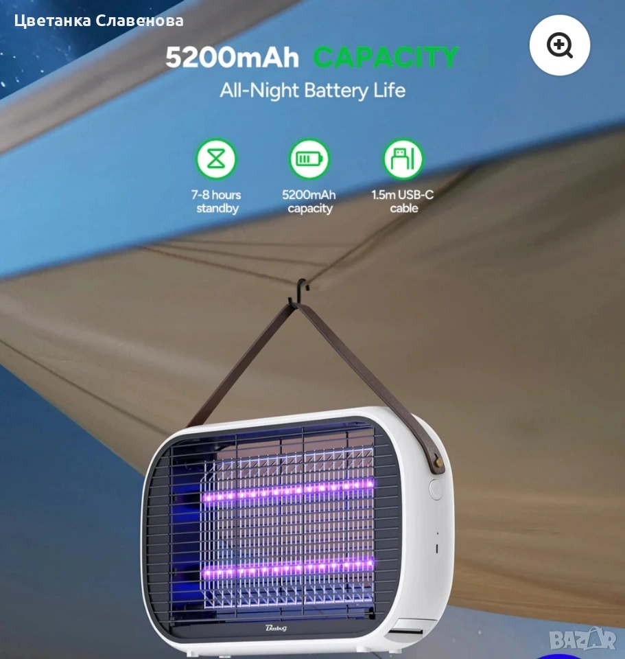 Акумулаторна LED лампа за унищожаване на насекоми Buzbug MA015C 5200mAh батерия