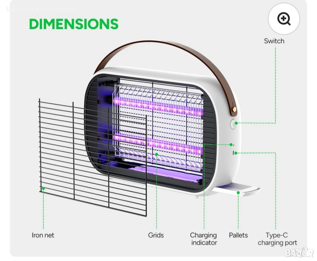 Батерия с голям капацитет 5200mAh: Оборудван с батерия с голям капацитет 5200mAh, електрическият уред за унищожаване на насекоми може да работи непрекъснато в продължение на 7-8 часа, което позволява дългосрочна безжична употреба. Освен това се предлага с 1,5-метров кабел за зареждане Type-C. (Този уред за унищожаване на насекоми не включва зарядно за стена. Моля, използвайте 5V 2A USB адаптер.)