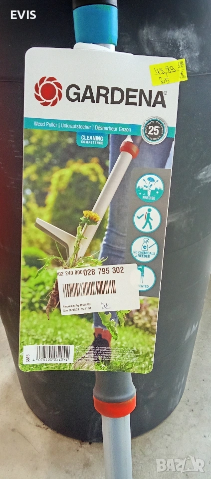 Gardena Уред за вадене на плевели (Weed Puller) – Като нов! Продавам високоефективен и ергономичен уред за премахване на плевели (глухарчета и др.) от марката GARDENA. Изключително лесен за употреба, позволява работа в изправено положение, без натоварване на гърба. Основни предимства: Екологично чист: Премахва плевелите механично, без нужда от химикали. Прецизност: Специални остриета, които проникват дълбоко в почвата и изваждат корена изцяло. Комфорт: Удобна D-образна ръкохватка и вграден механизъм за лесно изхвърляне на извадения плевел. Качество: Здрава конструкция с гарантирано немско качество от Gardena (серия Cleaning Competence). Състояние: Уредът е нов Оригинален продукт с баркод и етикети. Доставка: Изпращам по Еконт или Спиди с опция преглед и тест преди плащане. За повече информация или поръчка, моля пишете на лично съобщение.