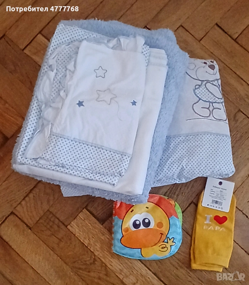 Бебешки спален комплект, мека книжка и нови чорапки → Обява 53984344
