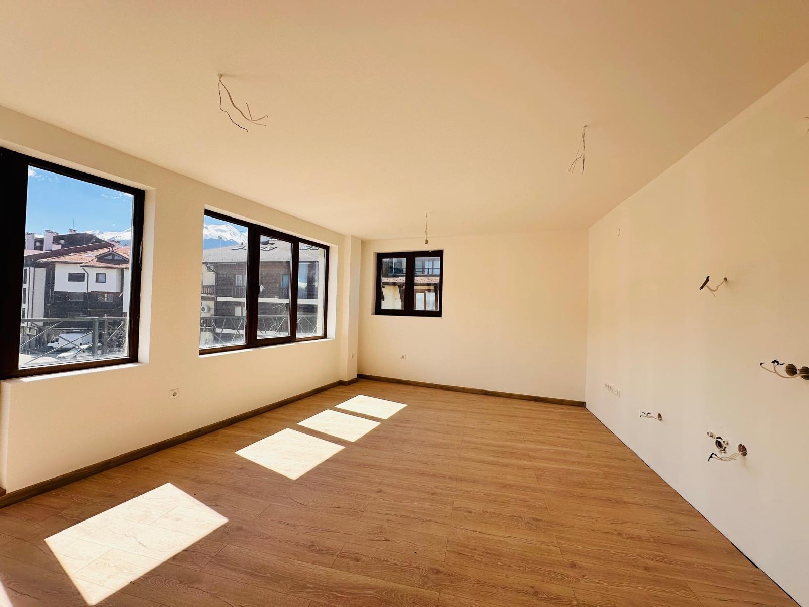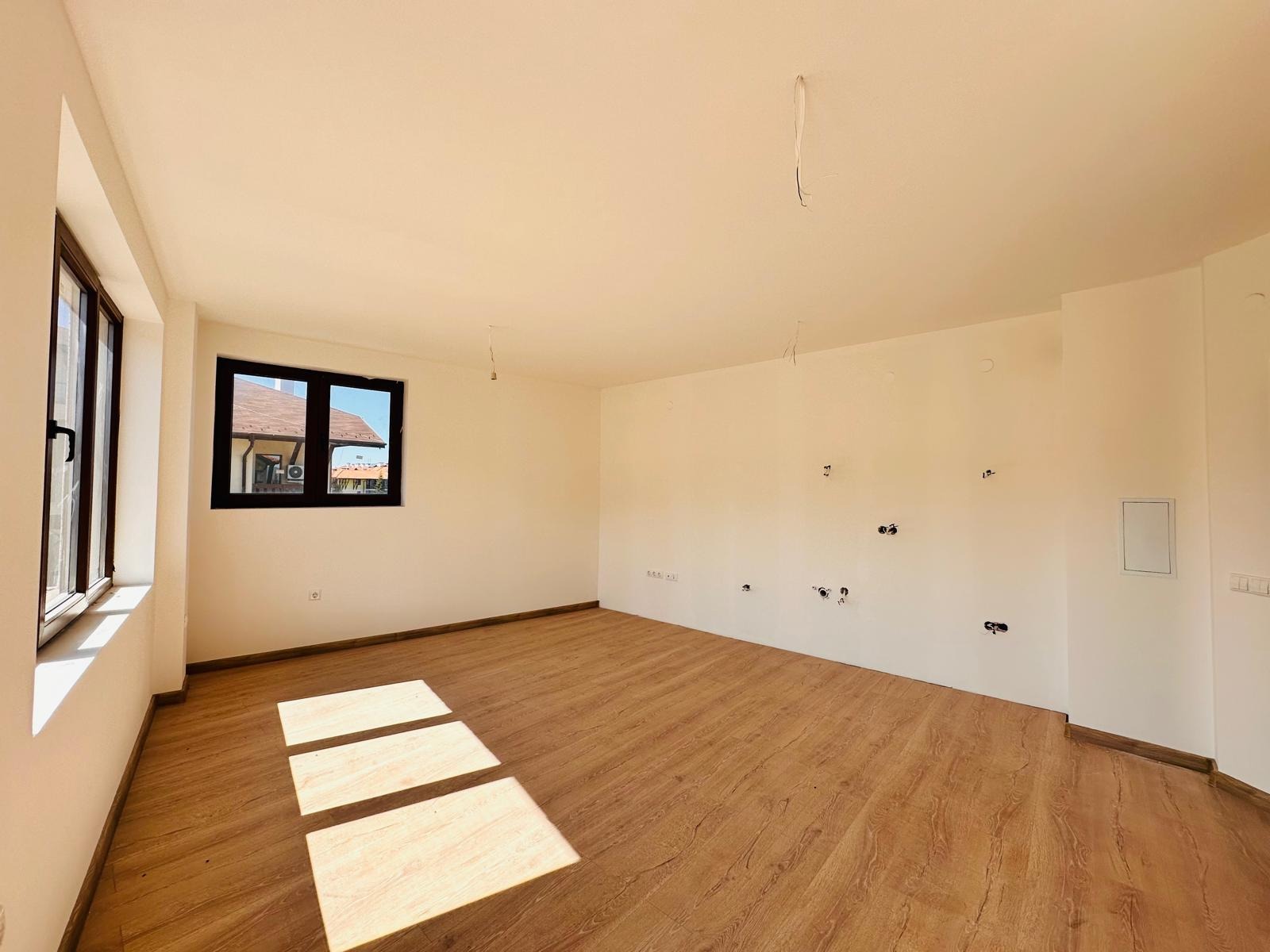 Апартаментът е чисто нов с поставен ламинат и с оборудвани баня и тоалетни (без бойлер).