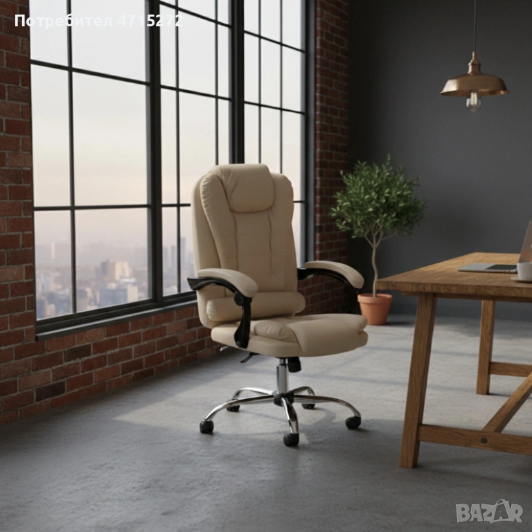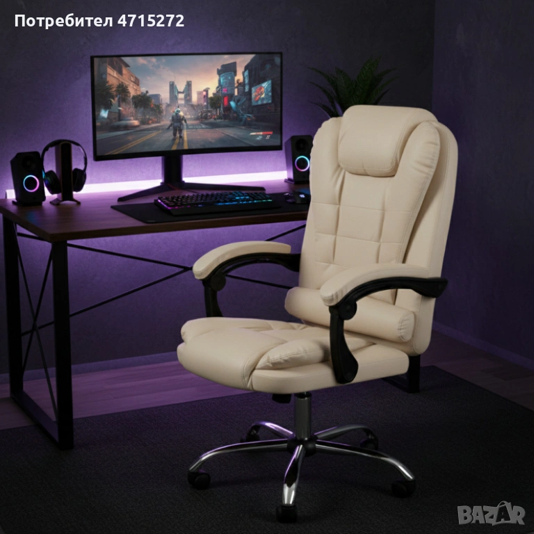 Ергономичен офис стол с лумбална опора от еко кожа в бежов цвят – комфорт за дълги часове без болки, снимка 1 - Столове - 53984435 Ергономичен офис стол с лумбална опора от еко кожа в бежов цвят – комфорт за дълги часове без болки, снимка 2 - Столове - 53984435 Ергономичен офис стол с лумбална опора от еко кожа в бежов цвят – комфорт за дълги часове без болки, снимка 3 - Столове - 53984435 Ергономичен офис стол с лумбална опора от еко кожа в бежов цвят – комфорт за дълги часове без болки, снимка 4 - Столове - 53984435 1/4