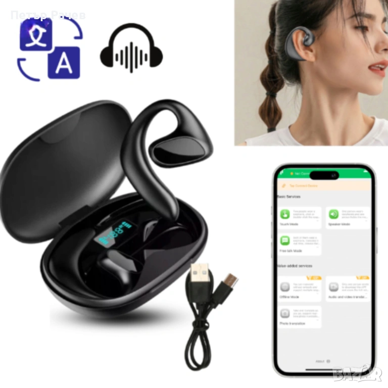 Безжични слушалки с AI превод 2 в 1 — превод в реално време → Обява 53984480