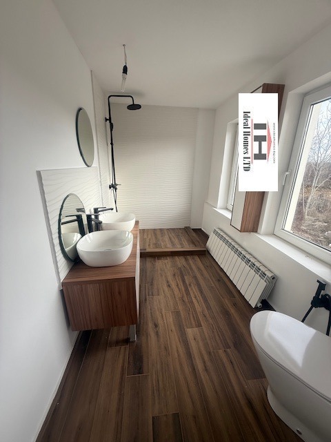 Жилищната площ е 120 м2, разпределени между два етажа. На първия етаж има всекидневна, кухня, трапезария, котелно помещение, коридор и голяма баня с тоалетна. Подовите настилки в кухнята, коридора и банята с тоалетната са гранитогрес, а трапезарията и всекидневната с ламинат.
