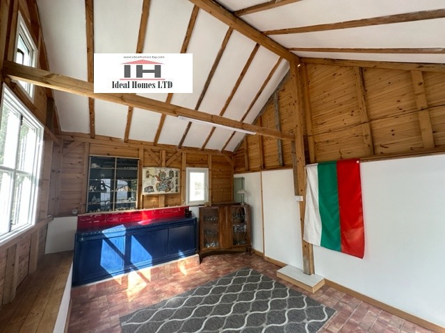 Къщата е с площ от 140 кв.м., разпределени между коридор, 3 спалн и трите със самостоятелни бани, едната е с ъглова вана. Коридорът осигурява достъп и до всекидневната, която разполага с печка на дърва за отопление на всички стаи в тази зона, кухня с всички необходими електроуреди, а непосредствено до кухнята се намиеа трапезарията, която има отделен вход откъм градината