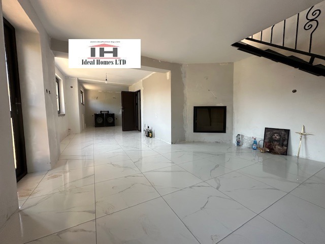 Къщата е на два етажа с площ от 130 кв.м., Първият етаж се състои от дневна с камина с водна риза и кухня, баня с тоалетна. Посредством вътрешни стълби се стига до вторият етаж, където има две спални от едната се излиза на панорамна веранда. Към имота има долепен навес, който може да се свърже с втория етаж и да се направи на още една спалня и баня с тоалетна.Къщата и покривът са изцяло ремонтирани, нови Ел. и ВиК инсталации, разполага и със септична яма.