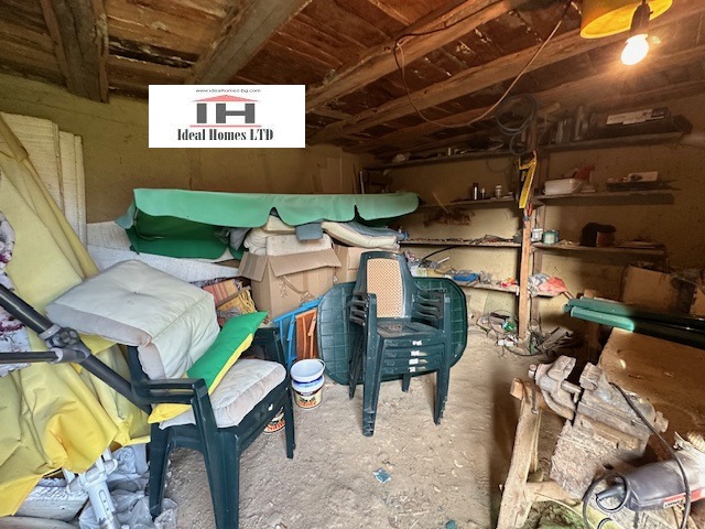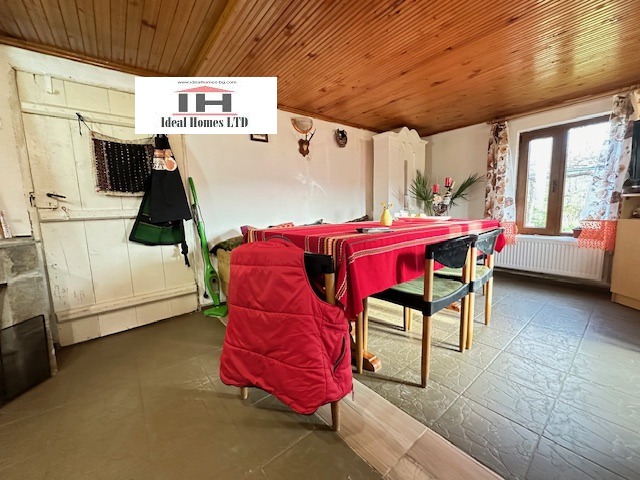 Имотът се състои от основна къща с площ 140 кв.м., разпределени между на два етажа. На първият етаж има кухня с трапезария и стая, баня и тоалетна. Вътрешни стълби водят до вторият етаж, където има три спални и балкон, който е затворен почти изцяло и може да се преобразува на баня с тоалетна, тъй като на етажа няма. Подовите настилки са изцяло дървено дюшеме, дограмата е PVC , златен дъб, има Вик и Ел инсталации. Имотът е след ремонт, покривът е в много добро състояние, има парно отопление на пелети с радиатори.