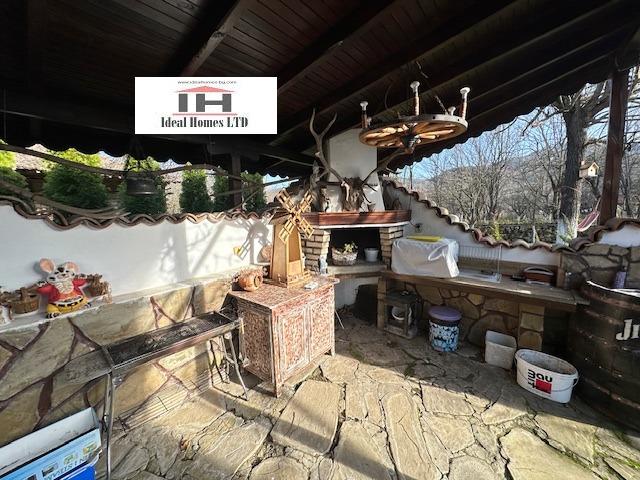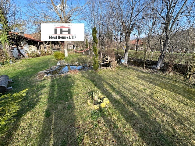 Дворът към имота е равен, близо 2500 кв.м., на част от него са засадени овощни дръвчета, добре ограден с телефна ограда и от едната страна е дувар. Има достъп за кола, кемпер или каравана.Има Г-образна плевня с навес в отлично състояние, с 3 помещения, като едното се изплзва, като склад за пелети и котелно, така че е много подходяща да се преобразува в едноетажна къща с една спалня. Има барбекю с навес и зона за отдих и релакс. Достъпът е целогодишен по асфалтов път. Има добър интернет и уникална гледка.