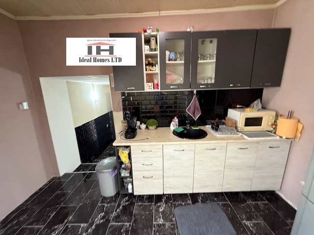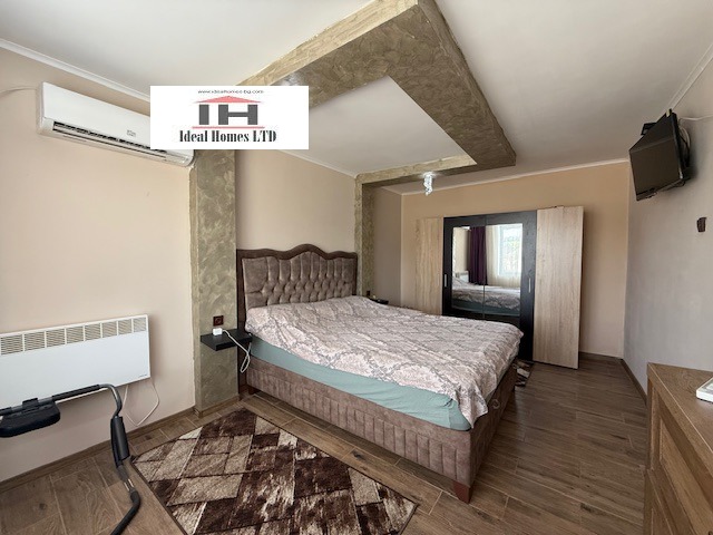 Къщата е с жилищна площ от 150 кв.м. До нея има прилепена пристройка, която е свързана към къщата. Там има кухня с трапезария и всекидневна. От там се влиза в мокро помещение баня и тоалетна и голям широк коридор и спалня. Подовите настилки са ганитогрес и теракот. В къщата на първият етаж има два климатика. Външни стълби,които много лесно могат да се затворят и да станат вътрешни, водят до вторият етаж, където има две спални и широк коридор, като може да се прегради и да се обособи баня с тоалетна. Къщата е в много добро състояние, с изцяло ремонтиран покрив и с направена изолация, има нужда да бъде измазана. Има нова Вик и Ел инсталации.