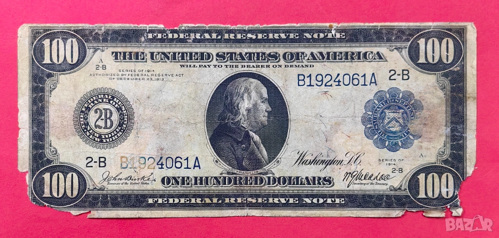 100 долара 1914 година САЩ, снимка 1 - Нумизматика и бонистика - 53984781 100 долара 1914 година САЩ, снимка 2 - Нумизматика и бонистика - 53984781 1/2