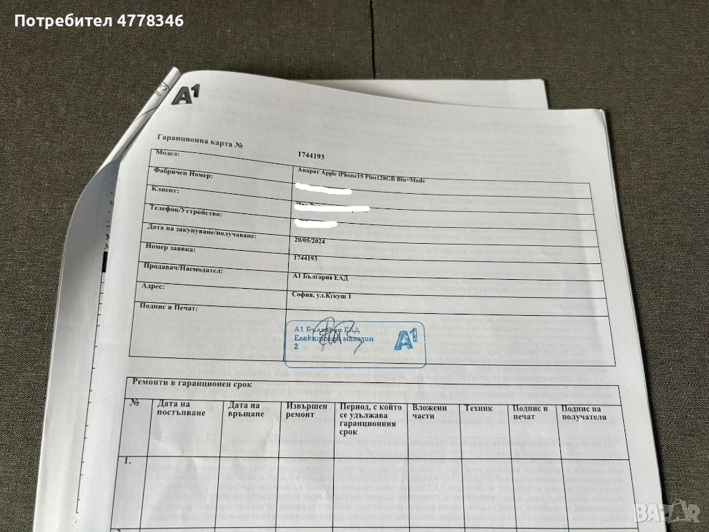 Здравейте, продавам iPhone 15 plus в отлично състояние и вид. Има всички документи, в пълен комплект е и има гаранция до май 2027г. от А1. Подарявам кейс на Ringke Fushion Bold и има залепено качествено 3mk фолио-протектор на екрана.
