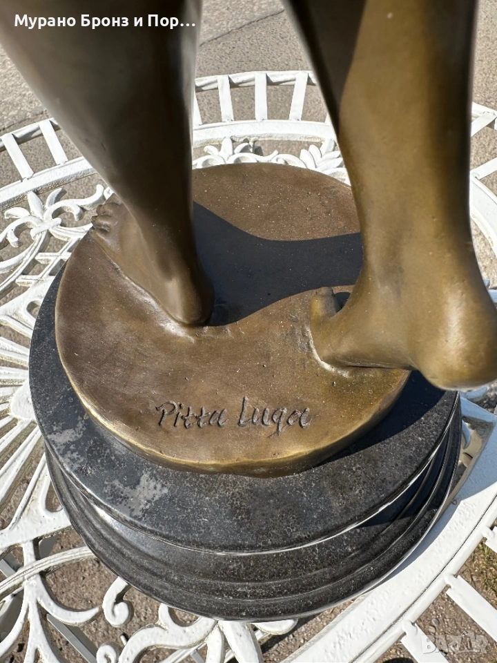 Продавам изключително красива и масивна бронзова скулптура на италианския автор Pitta Luga. Фигурата е изработена с високо ниво на детайлност и елегантност, характерни за творчеството на този артист.