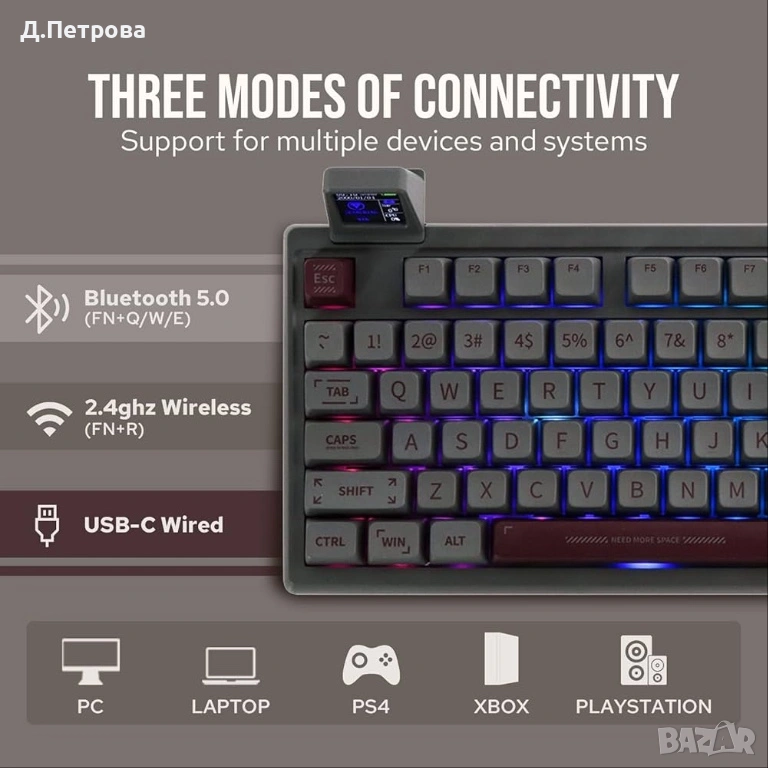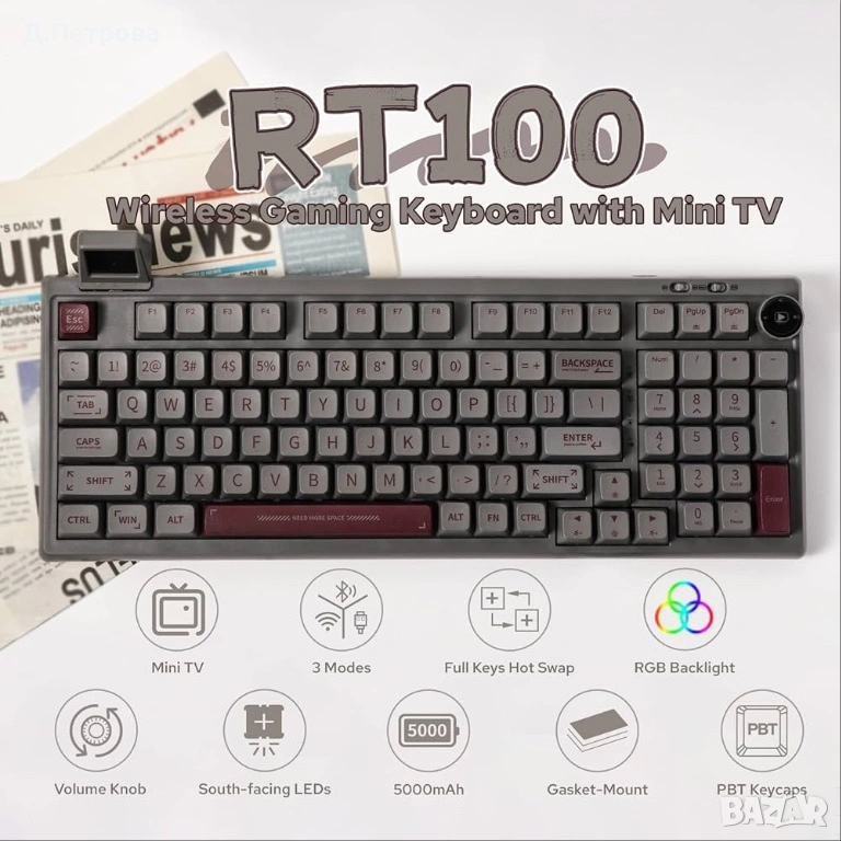Продавам стилна и функционална кмеханична клавиатура EPOMAKER RT100 , подходяща за гейминг, работа и мултимедия. Отличава се с компактен дизайн с цифров блок и уникален подвижен цветен TFT LCD дисплей.