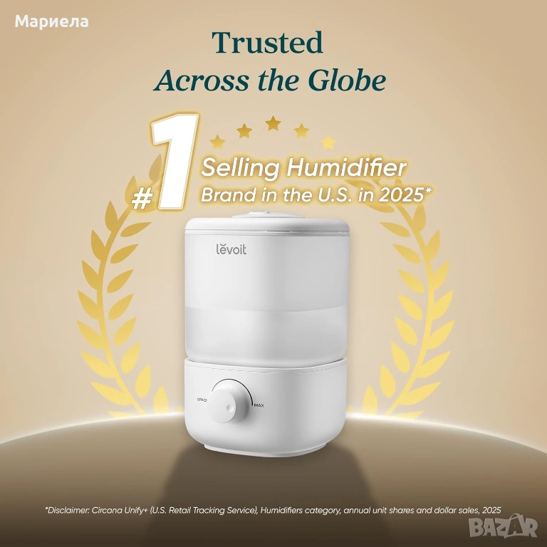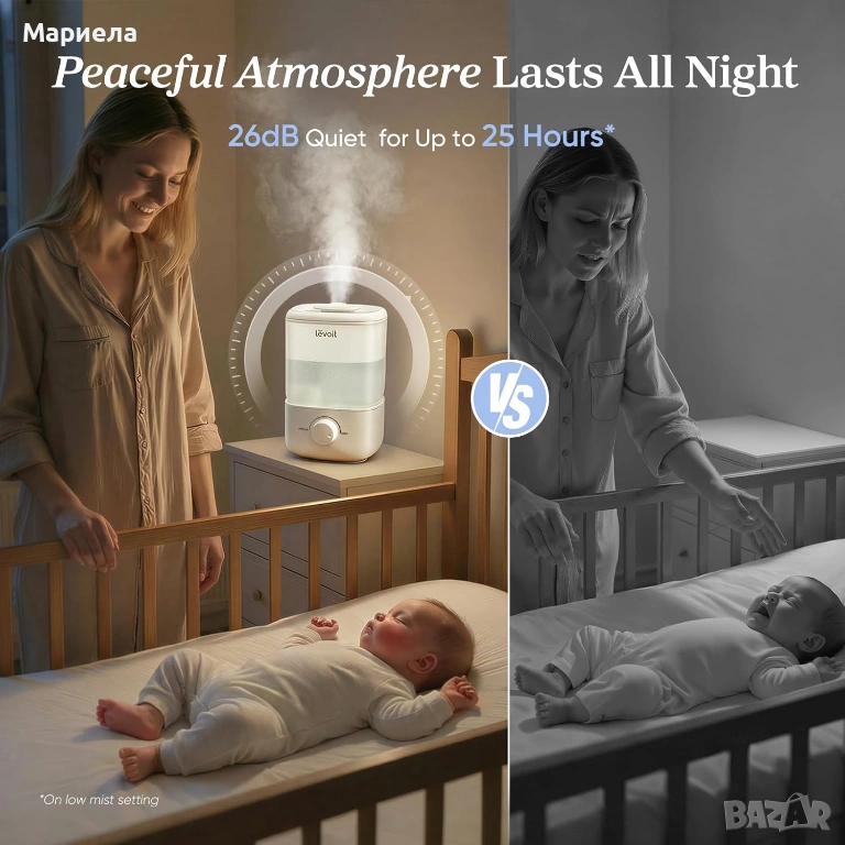 LEVOIT Овлажнител с горно пълнене, до 25 часа, за спалня или детска стая, тих 23 dB