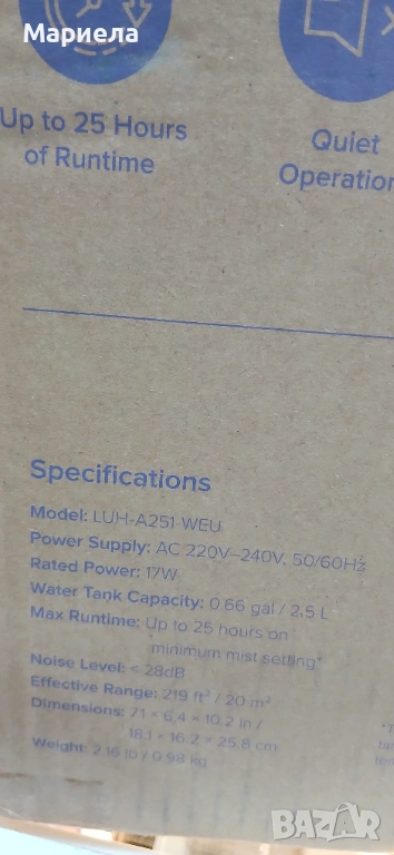 Овлажнителя е закупен от разпродажба в Германия и е НОВ !
