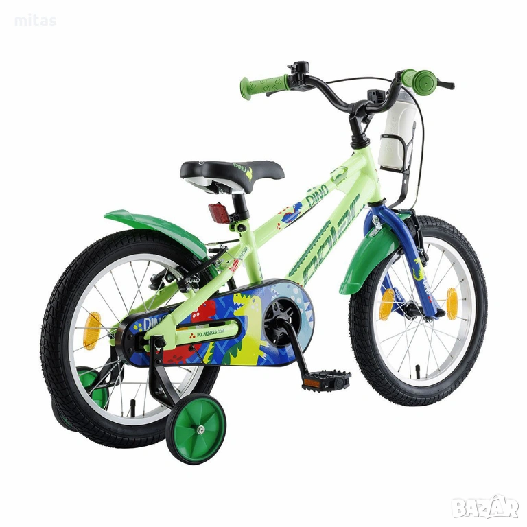 детски велосипед 16 цола, Polar Junior 16, детско колело 16 инча, велосипед за деца 4-6 години, детски велосипед с помощни колела, детски велосипед V-brake, Polar велосипед, детски велосипед Police Icecream Dino, велосипед за начинаещи деца, детско колело с калници и звънец