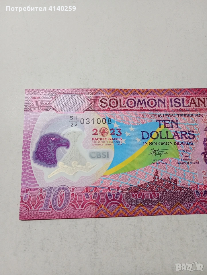 СОЛОМОНОВИ ОСТРОВИ БАНКНОТА 10 ДОЛАРА 2023 Г ПОЛИМЕРНА СЪСТОЯНИЕ НОВО ПОЛУЧАВАТЕ СНИМАНАТА БАНКНОТА РАЗГЛЕДАЙТЕ ДРУГИТЕ МИ ОБЯВИ ДА КОМБИНИРАТЕ ДОСТАВКА ЕКОНТ ЗА ВАРНА ЛИЧНО