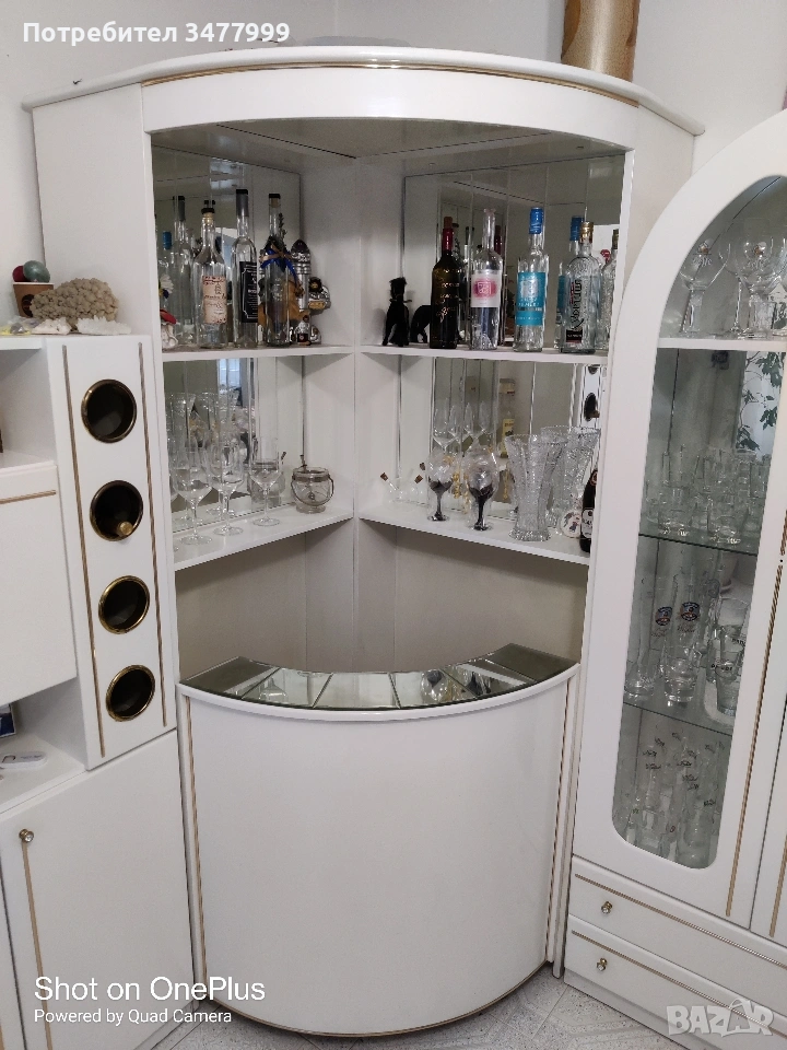 Секцията е в много добро състояние, няма драскотини или отлепено някъде, понеже е боядисвана, а не с лепен фурнир и кантове. Секцията се предлага без декорациите вътре! Взимане от адрес с личен транспорт!