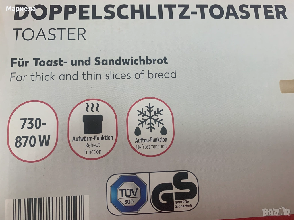Тостер за хляб за 2 филии / 870W → Обява 53985461