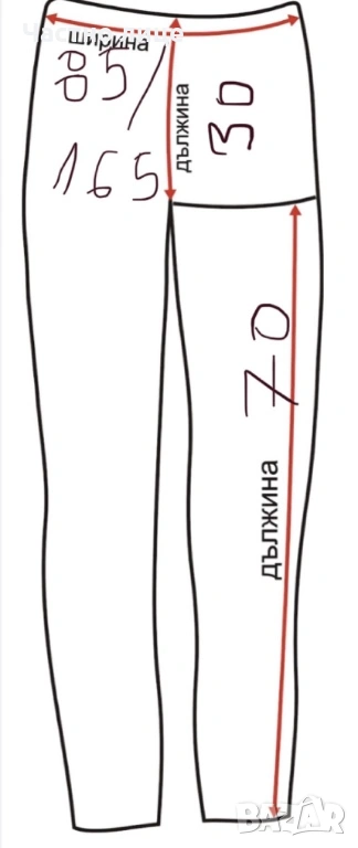 * Двете стойности за обиколка на талията съответстват на: 1) нормално състояние на ластика 2) в разпънато състояние. Ханш: 110см