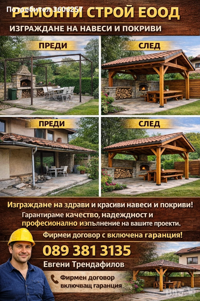 ✔ Изграждане на навеси и покривни конструкции