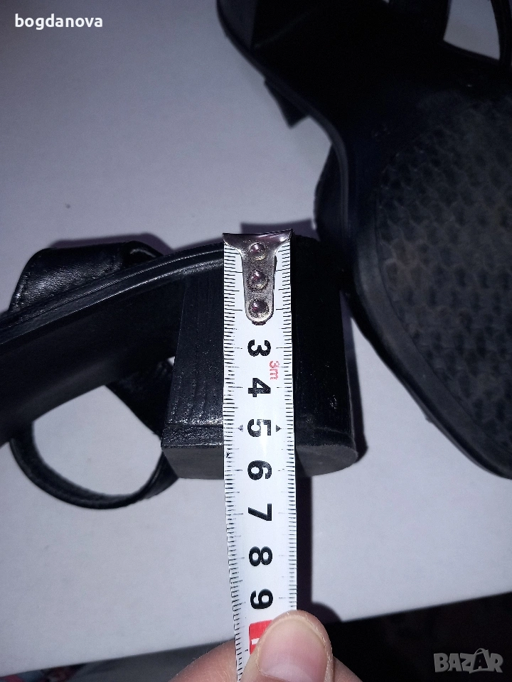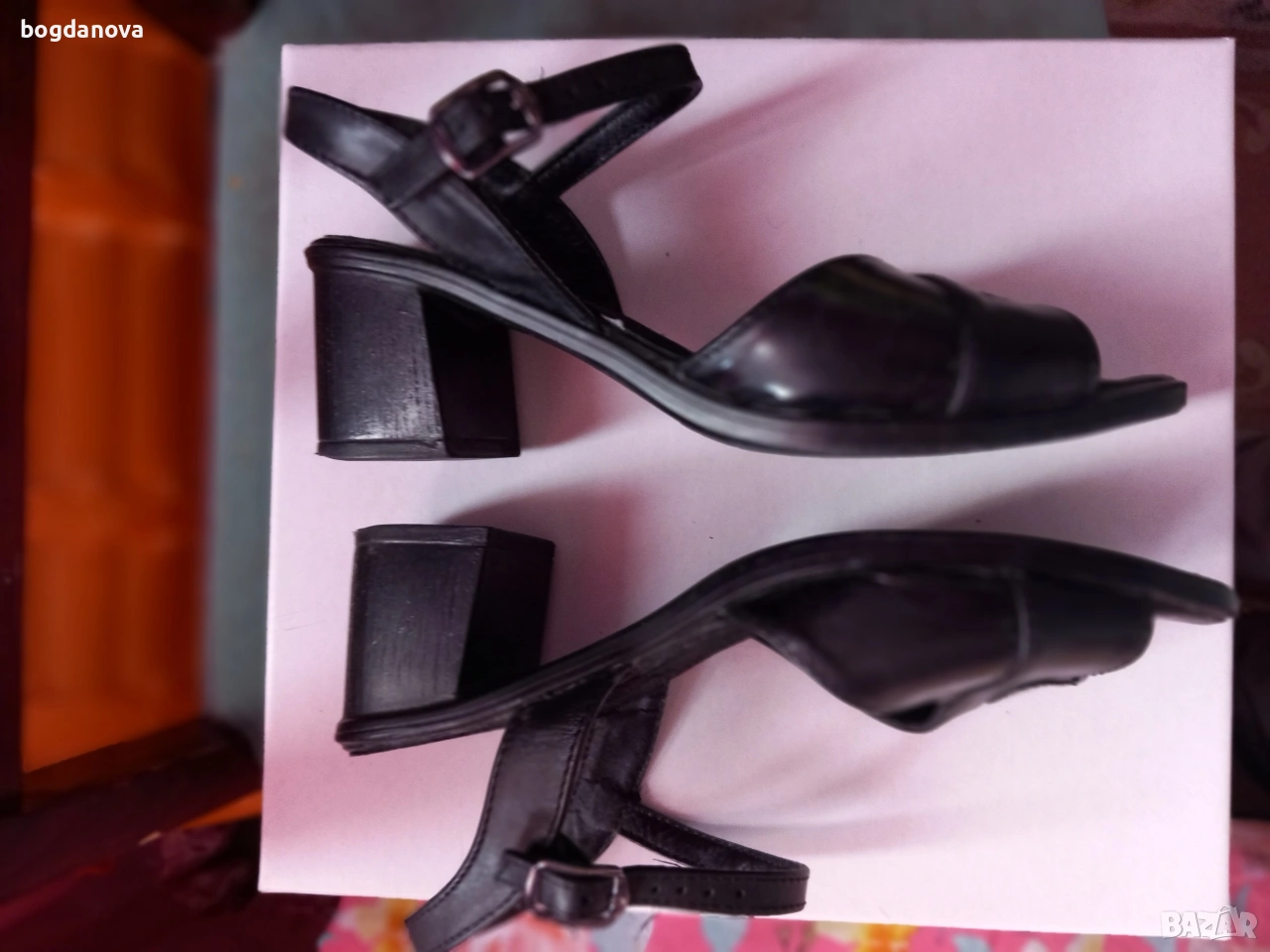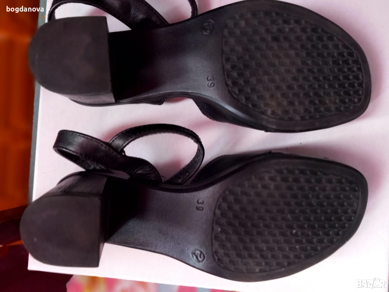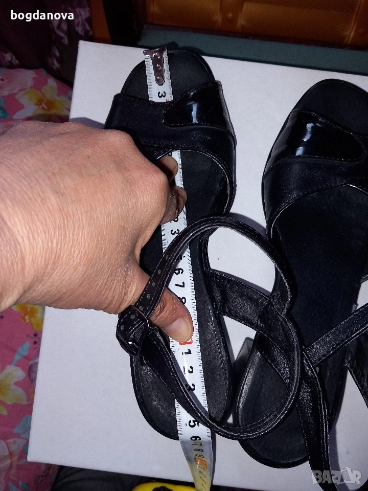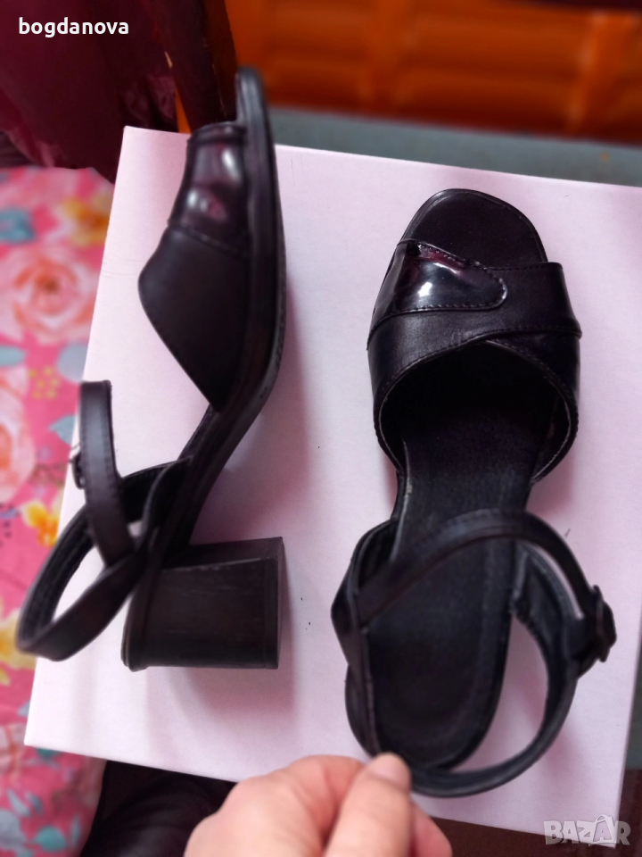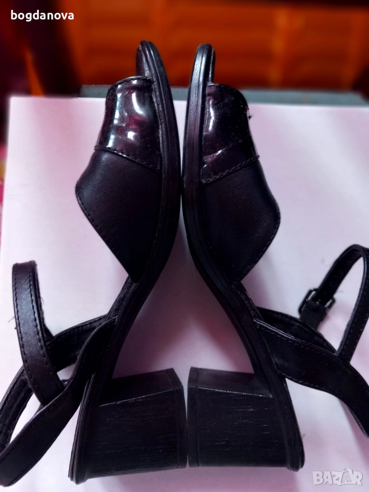 Летни елегантни черни сандали от естествена кожа с лак, 39 номер → Обява 53985863