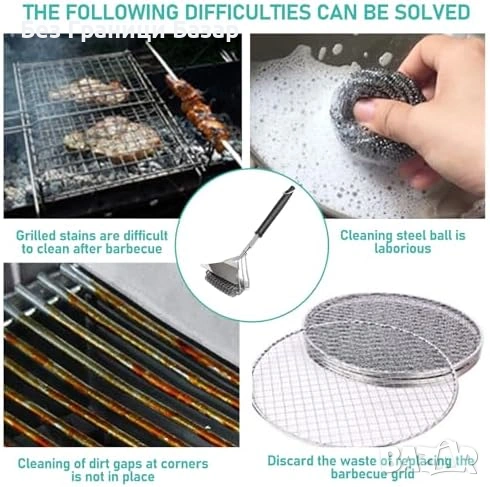 Нова BBQ четка за почистване на газова въглищна скара грил с метална стъргалка