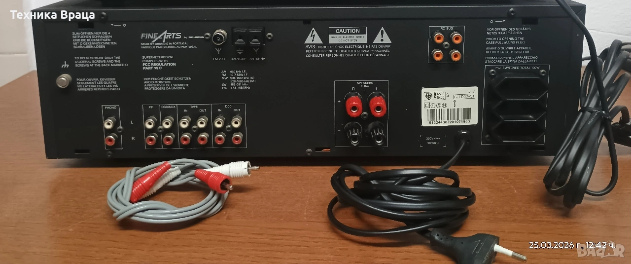 Grundig Fine Arts R2 (Стерео RDS Ресивър) Този модел е комбиниран усилвател и тунер, известен със своята здрава изработка и отлични звукови характеристики. Мощност: Музикална мощност: 2х100W. Номинална мощност (RMS): При 4 ома: 2х70 W. При 8 ома: 2х50 W. Динамична мощност: 2х120 W при 4 ома. Входове: Разполага с конектори за 5 устройства, включително Phono вход за грамофон. Тунер: Оборудван с RDS (Radio Data System) за показване на имената на станциите и друга информация. Функции: Предлага възможност за запаметяване на до 59 станции. Предлагам и други усилватели, тонколони и друга техника. Можете да разгледате като влезнете в търговският профил "Техника Враца" . Всичко може да се види и тества в гр. Враца. Изпращам с опция преглед и тест. Доставям и лично до определено разстояние. Моля разгледайте и другите ми обяви. 🔊🔊Музиката е живот!🔊🔊