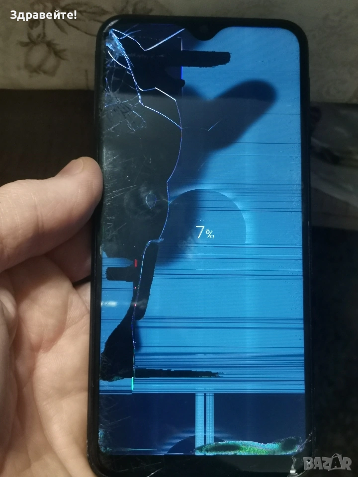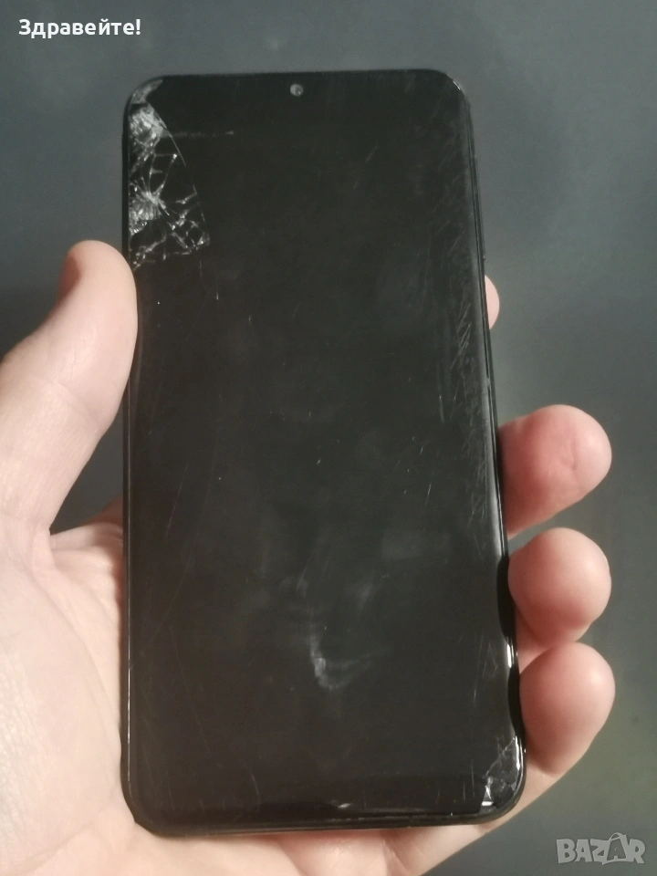Телефон Samsung Galaxy A20e, счупен дисплей, липсва копчето за включване.