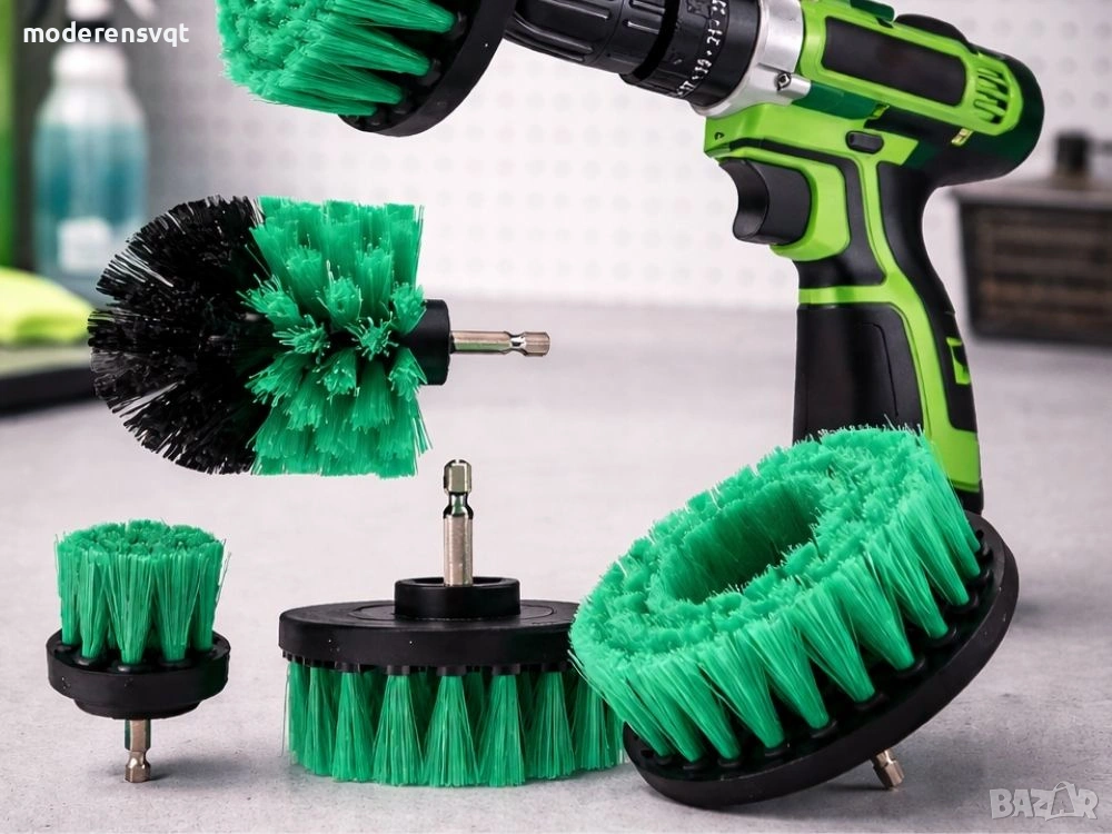 Комплектът включва различни видове четки и почистващи приставки, което ви позволява да адаптирате инструмента към специфична повърхност. Меките елементи са идеални за боядисване и деликатни повърхности, докато по-твърдите са подходящи за джанти или по-упорити замърсявания.