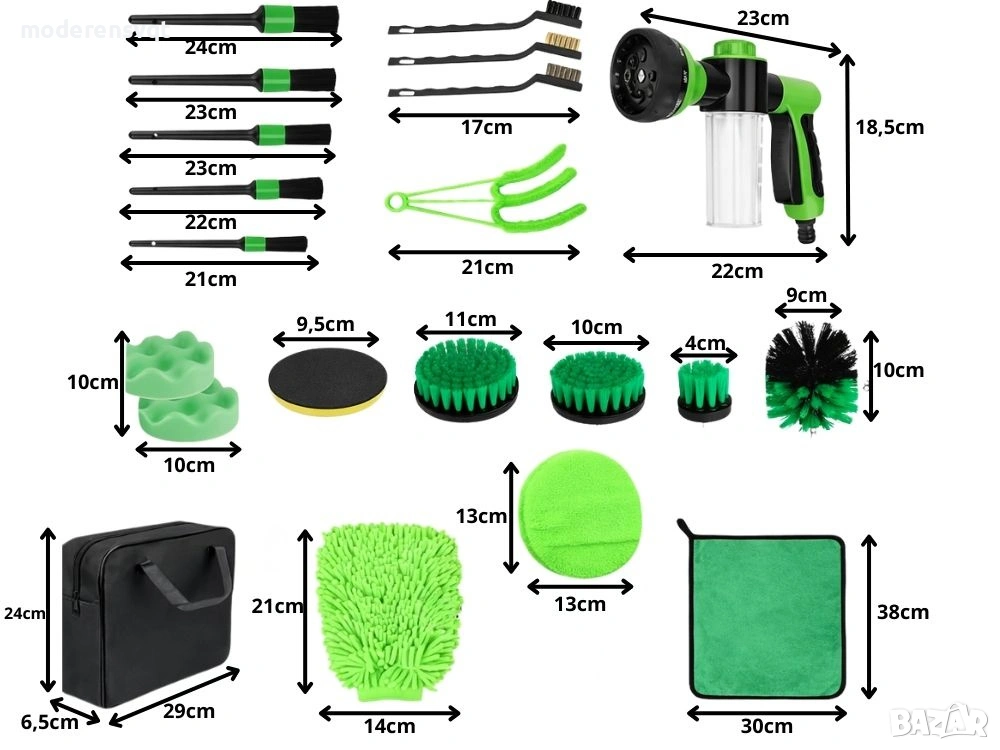 Комплект за почистване на автомобили от 21 части аксесоари за автомивки и детайлинг