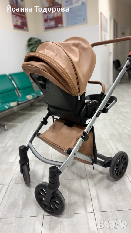 Шасито може да се сгъва едновременно със седалката, което ще ви улесни при пренасянето на количката. Дръжката има цели 9 позиции, които да настройвате в зависимост от височината си.