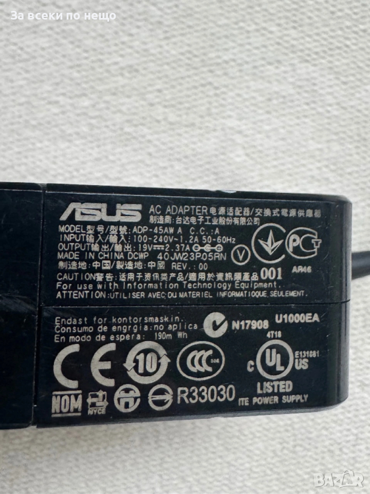 Оригинално зарядно Asus 19V 2.37A 45W , Букса: 4.0х1.3мм, снимка 1 - Кабели и адаптери - 53986291 Оригинално зарядно Asus 19V 2.37A 45W , Букса: 4.0х1.3мм, снимка 2 - Кабели и адаптери - 53986291 Оригинално зарядно Asus 19V 2.37A 45W , Букса: 4.0х1.3мм, снимка 3 - Кабели и адаптери - 53986291 Оригинално зарядно Asus 19V 2.37A 45W , Букса: 4.0х1.3мм, снимка 4 - Кабели и адаптери - 53986291 Оригинално зарядно Asus 19V 2.37A 45W , Букса: 4.0х1.3мм, снимка 5 - Кабели и адаптери - 53986291 Оригинално зарядно Asus 19V 2.37A 45W , Букса: 4.0х1.3мм, снимка 6 - Кабели и адаптери - 53986291 Оригинално зарядно Asus 19V 2.37A 45W , Букса: 4.0х1.3мм, снимка 7 - Кабели и адаптери - 53986291 1/7