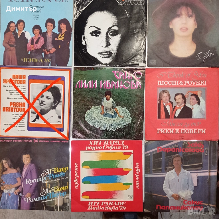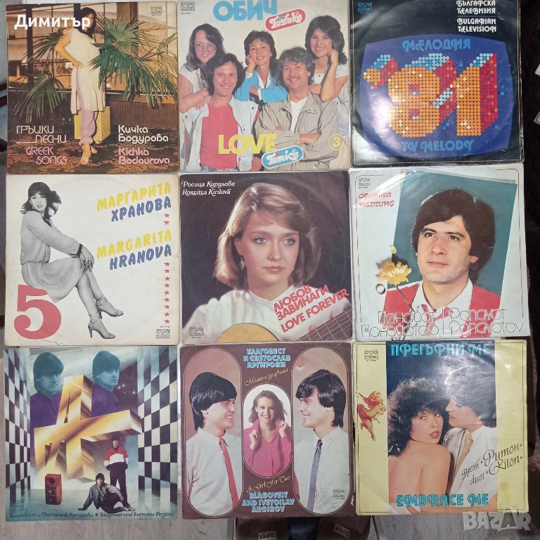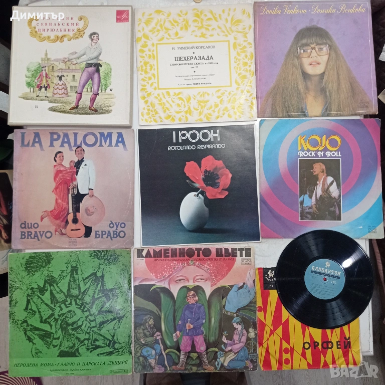 Плочите от първата снимка са по 20 евро, останалите са от 5 до 10 евро за брой, в зависимост от изпълнителя и състоянието на обложката.